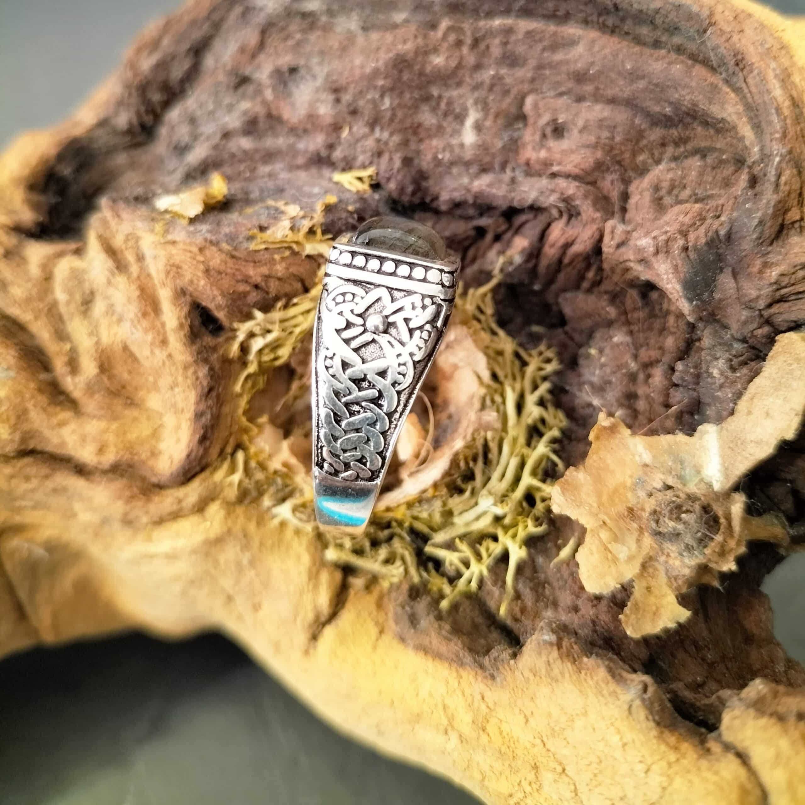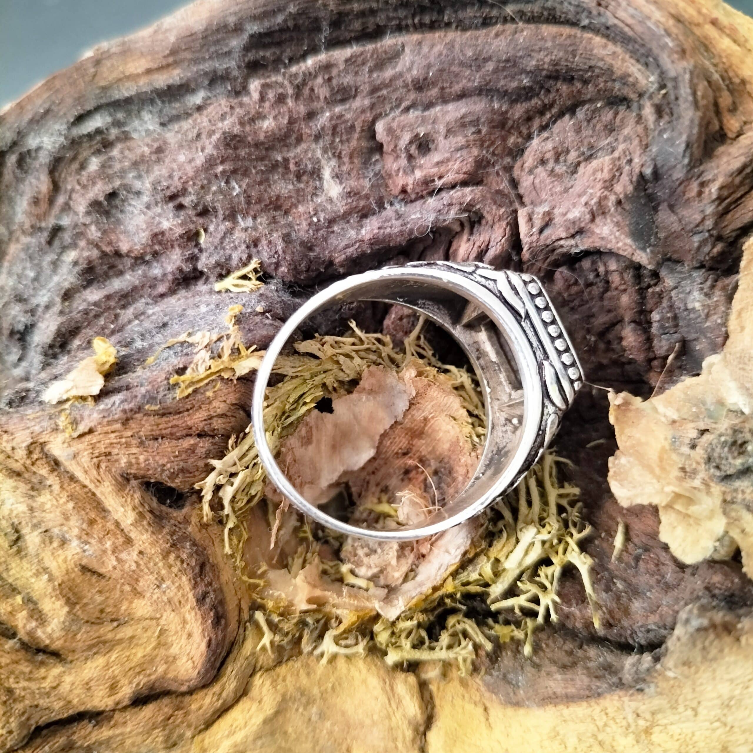 Photo contractuelle, la Bague Homme Labradorite taille 62 Argent en photo est celle que vous recevrez !